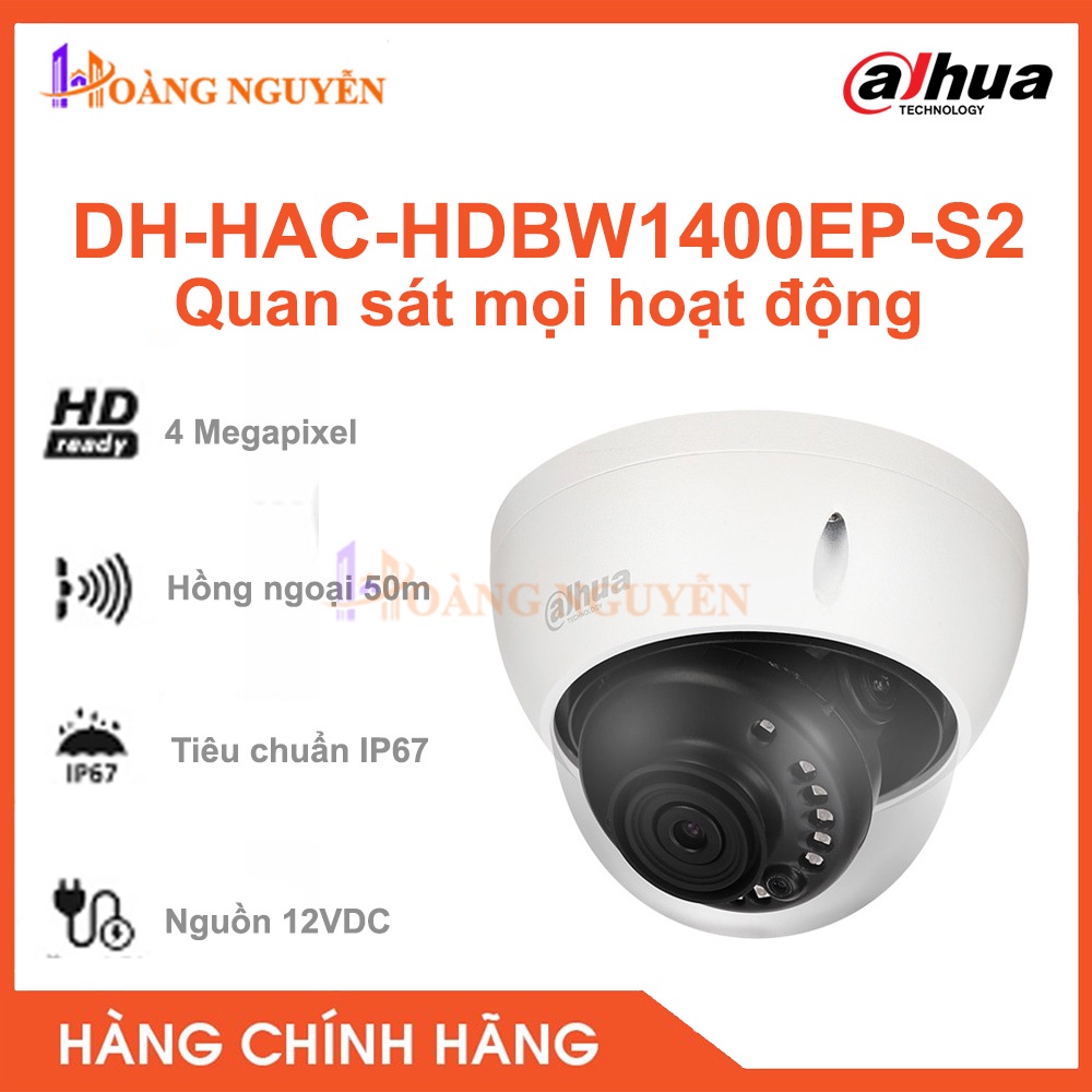 Cameras & Flycam > Camera giám sát > Camera giám sát kết nối internet || CAMERA Dahua DH-HAC-HDBW1400EP-S2 4MP Vỏ Kim Loại, Hỗ Trợ Chống Nước, Bụi Bẩn - Chuyên Gia Lắp Đặt Ngoài TrờiCòn hàng