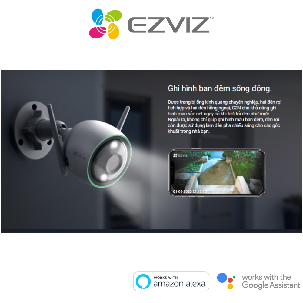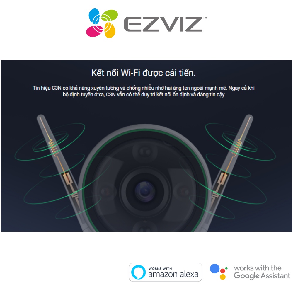 Camera EZVIZ C3N, 2 ăng ten wifi mạnh mẽ, ngoài trời, độ phân giải 1080p, IP67, ghi hình màu ban đêm