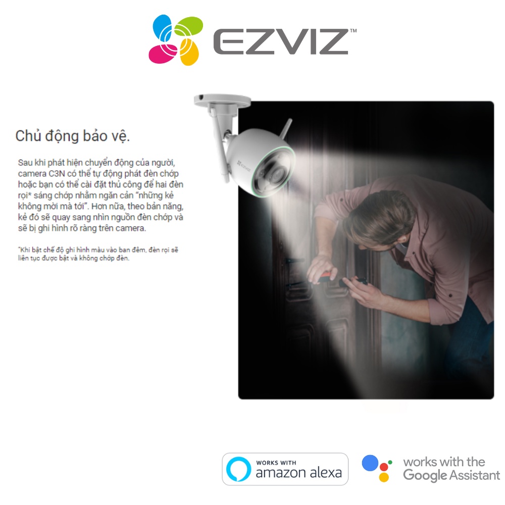 Giới thiệu Camera EZVIZ C3N, 2 ăng ten wifi mạnh mẽ, ngoài trời, độ phân giải 1080p, IP67, ghi hình màu ban đêm