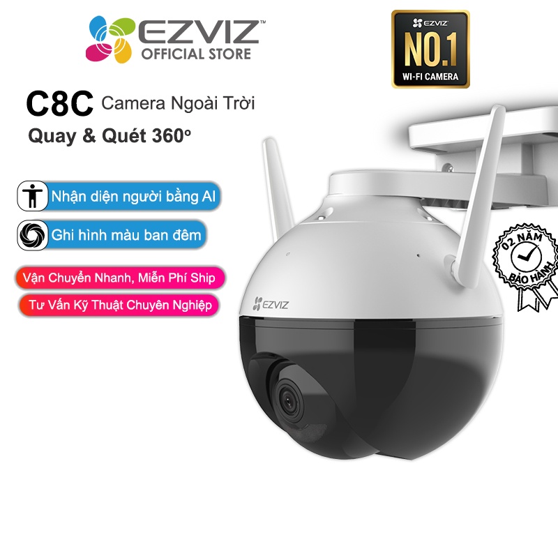 Camera EZVIZ C8C 1080p WI-FI 360 Độ Ngoài Trời, Nhận Diện Người AI, Nén Video H265, Ghi Hình Màu Ban Đêm-Hàng Chính Hãng