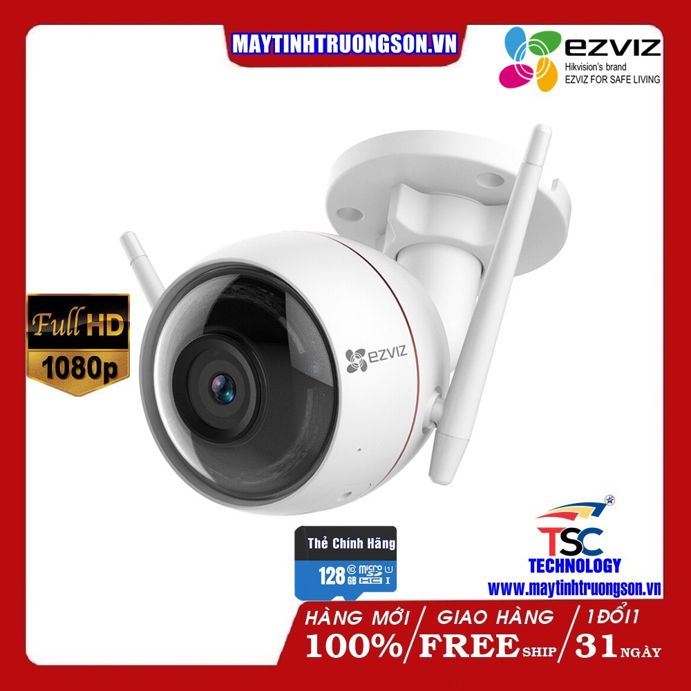 Cameras & Flycam > Camera giám sát > Camera giám sát kết nối internet || Camera EZVIZ CS-CV310 C3WN 2.0M Ful HD 1080P Kèm Thẻ Lưu Trữ 128Gb | Camera IP66 Ngoài Trời Chịu Mưa NắngCòn hàng