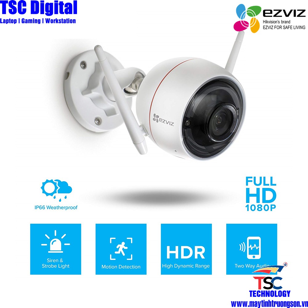 Giới thiệu Camera EZVIZ CS-CV310 C3WN 2.0M Ful HD 1080P Kèm Thẻ Lưu Trữ 128Gb | Camera IP66 Ngoài Trời Chịu Mưa Nắng