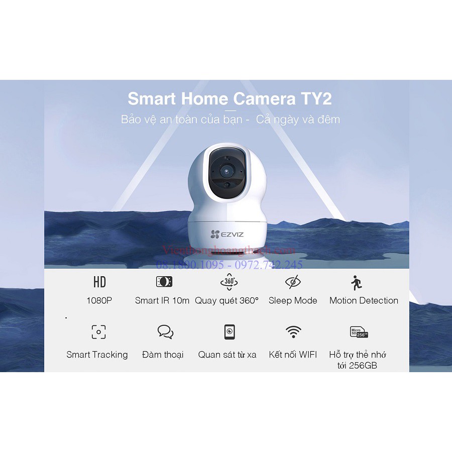 - Camera IP quay & quét kết nối WiFi thông minh EZVIZ TY2 cho phép bạn dễ dàng quan sát toàn bộ không gian với phạm vi quan sát 360 độ, cùng với những tính năng theo dõi thông minh bảo vệ an toàn cho ngôi nhà của bạn cả ngày lẫn đêm.