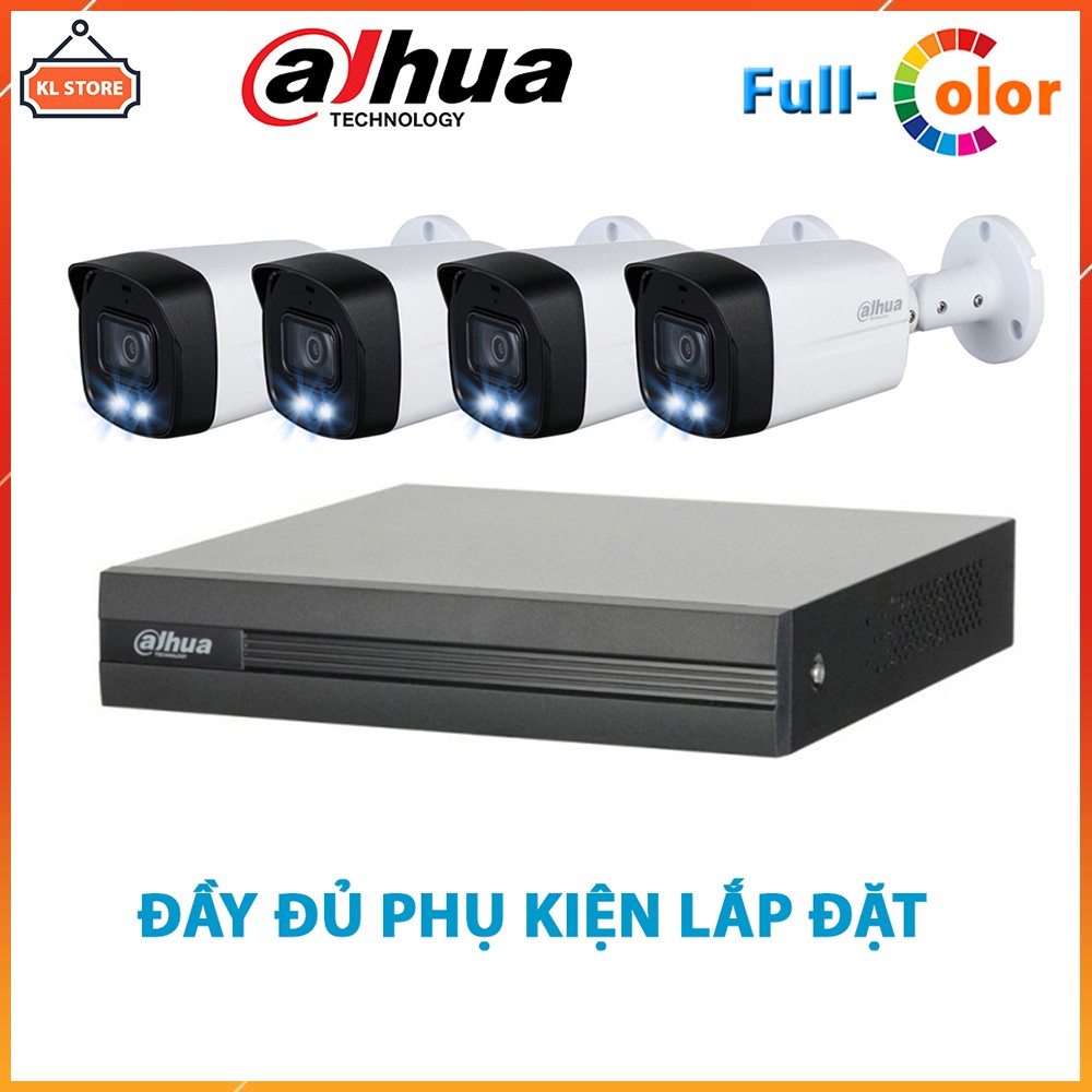 Bộ Camera Giám Sát Dahua 4 Kênh Full Color Quay Có Màu Ban Đêm - Tron Bộ Camera Dahua Đầy Đủ Phụ Kiện Lắp Đặt