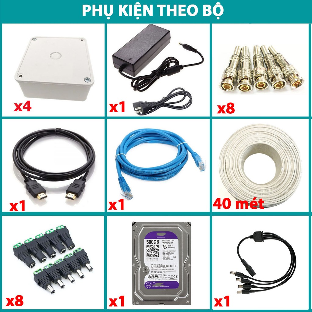 - 04 Camera Full Color Độ phân giải Full HD 1080P