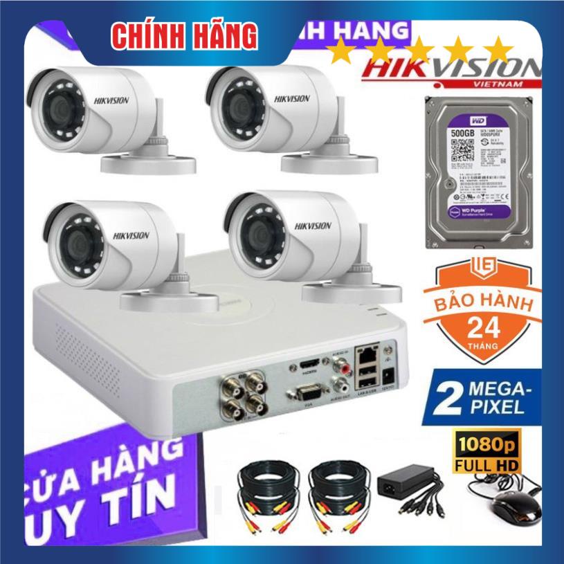 Bộ Camera giám sát HIKVISION Full HD 1080P - Trọn bộ 4 mắt 1080P + Đầu ghi ĐỦ PHỤ KIỆN