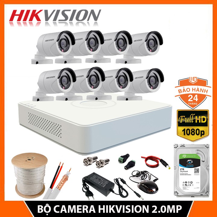 Bộ camera giám sắt HiKVISION FULLHD 1080P - Trọn bộ 8 mắt 2.0MP FHD, Kèm HDD 2TBB, đầy đủ phụ kiện lắp đặt - BH 24 Tháng