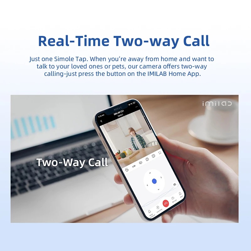 > Imilab C21 CMSXJ38A còn sở hữu khả năng đàm thoại 2 chiều theo thời gian thực, cho phép người dùng có thể liên lạc từ xa với người thân tại nhà, một tính năng vô cùng hữu ích giúp bạn không phải bỏ lỡ bất kỳ tin nhắn quan trọng nào.