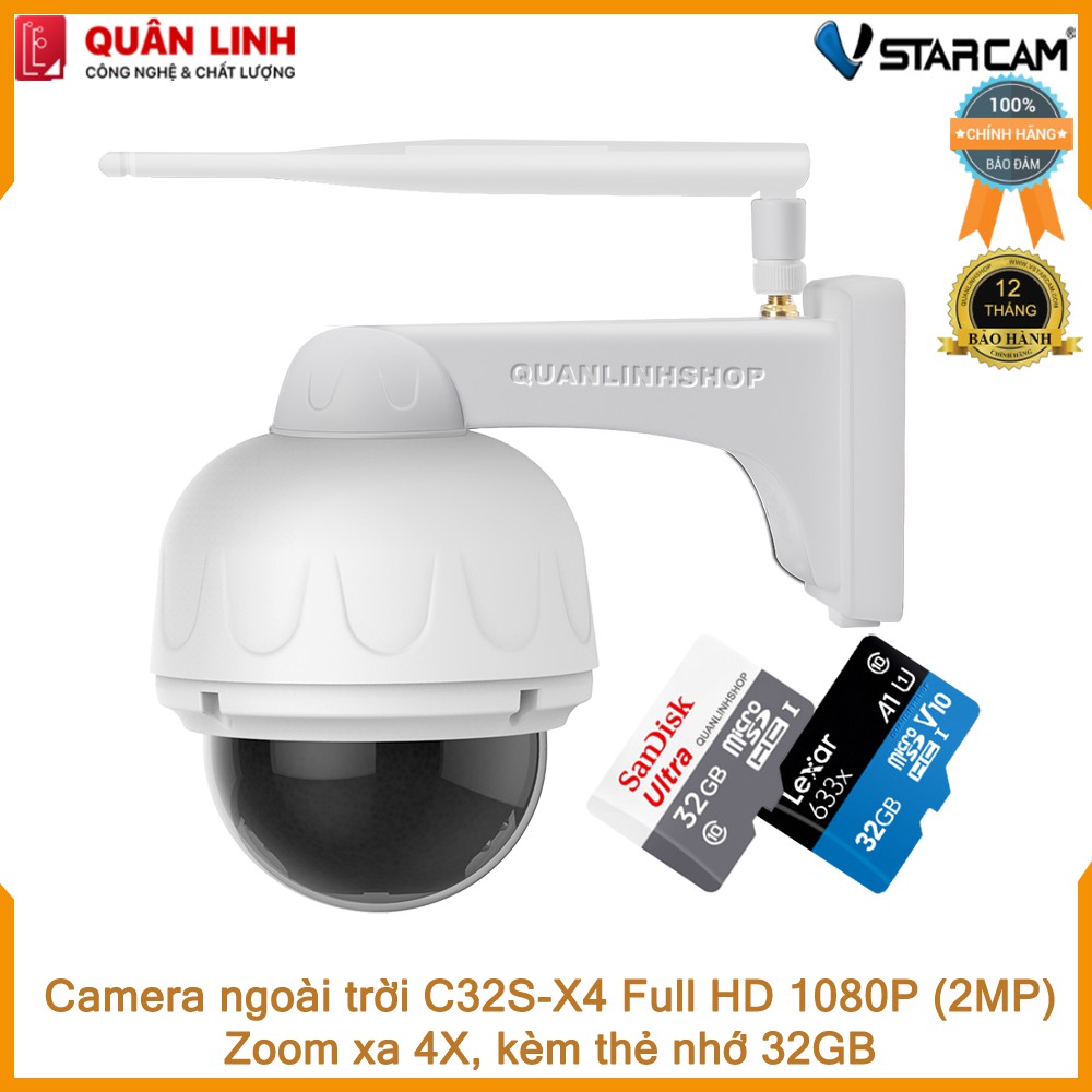 Camera giám sát IP Wifi hồng ngoại ngoài trời zoom xa 4X Full HD 1080P 2MP Vstarcam C32s-X4 kèm thẻ nhớ 32GB