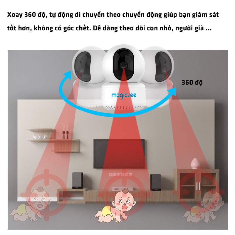 Tương tự như các phiên bản Camera Magicsee khác, SA300 cũng có có tính năng xoay lên đến 360 độ cùng với đó là khả tính năng di chuyển theo chuyển động giúp camera SA300 có thể giám sát ở mọi vị trí, giúp cho việc theo dõi ngôi nhà bạn trở lên dễ dàng hơn.