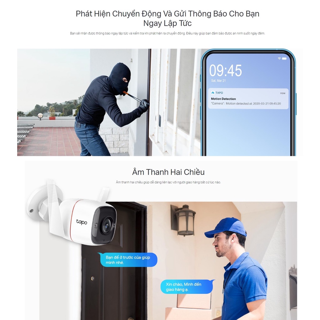 Camera giám sát ngoài trời thương hiệu tplink, model: tapo C310-Thu video độ phân giải 3MP