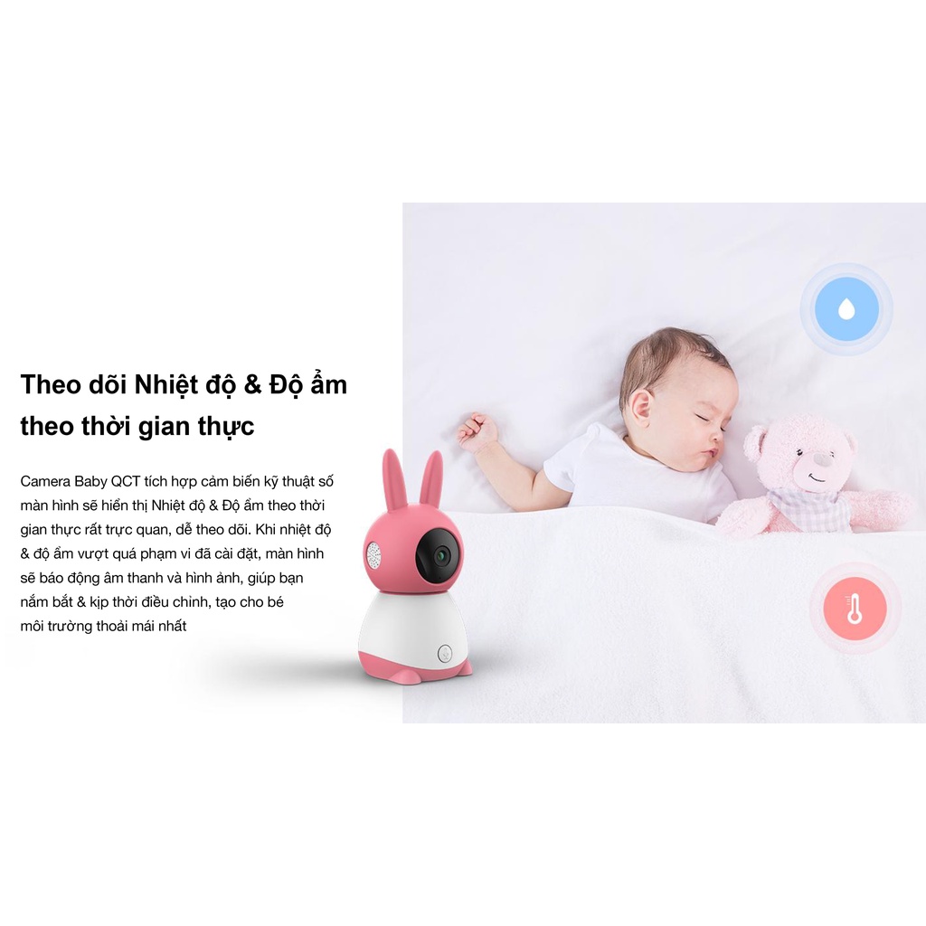 Camera giám sát QCT baby monitor kèm màn hình hiển thị - cảm biến nhiệt độ, độ ẩm, cảnh báo trẻ em khóc, đàm thoại