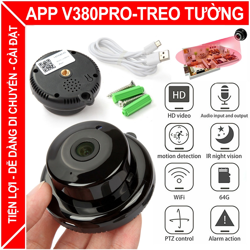 Camera giám sát V380 Pro mini treo tường siêu nét cao cấp - nhỏ gọn siêu tiện lợi