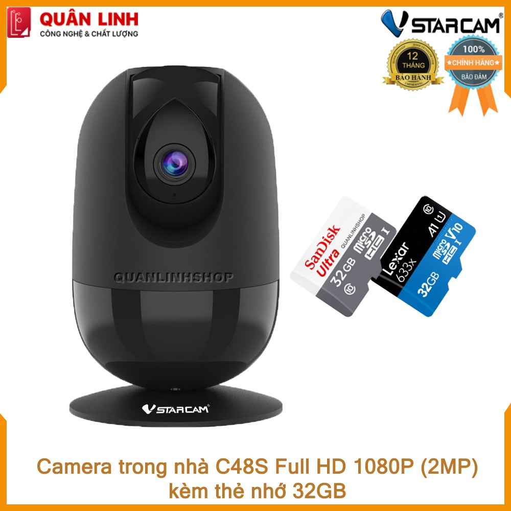 THÔNG TIN SẢN PHẨM- Tên sản phẩm: Camera giám sát hồng ngoại Vstarcam C48s Full HD 1080P (2MP) kèm thẻ 32GB
