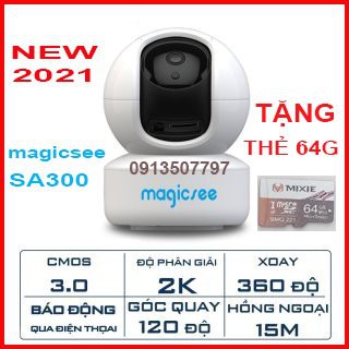 camera giám sát Wifi Magicsee SA300 tặng thẻ nhớ 64g – 3mpx QHD 2K Xoay 360 độ tối đa 2k (3mpx) - Bảo hành 1 năm