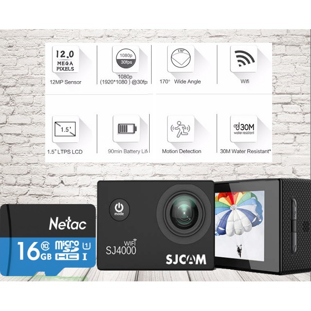 Camera Hành Động Thể Thao SJCAM SJ4000 Wifi Hàng Chính Hãng + Thẻ Nhớ 16GB