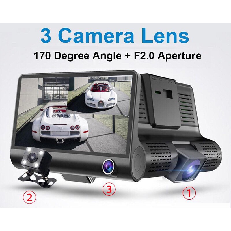- Ghi hình với 3 camera trước , sau và camera lùi , nhìu chế độ hiển thị tùy chọn