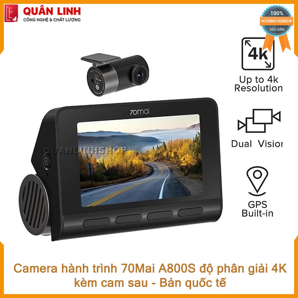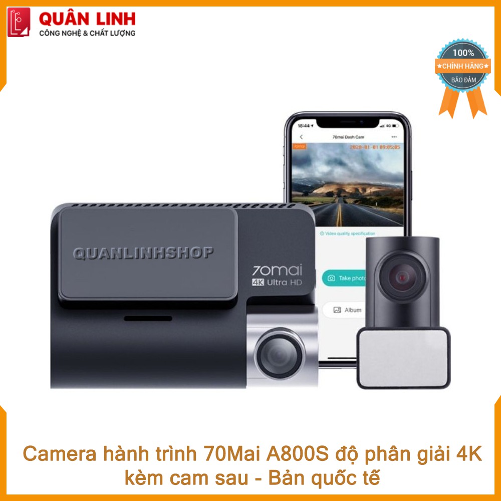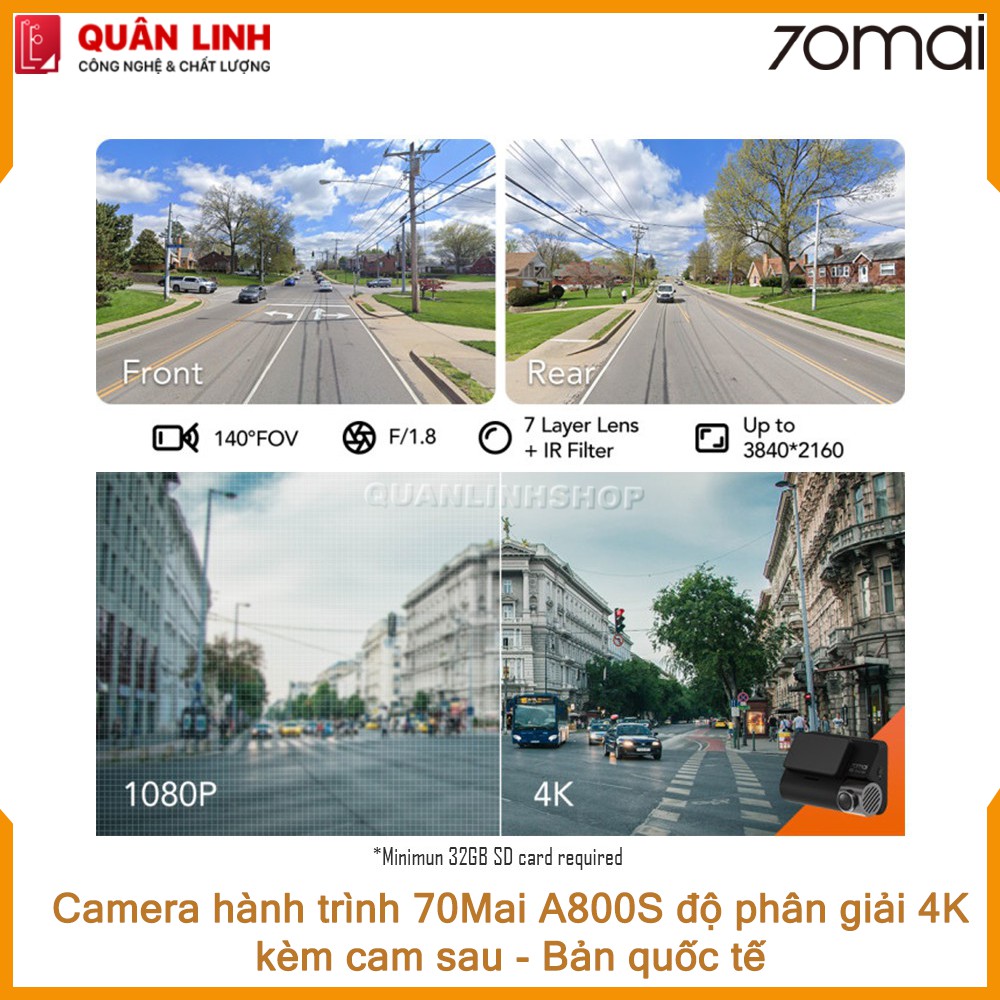 Camera hành trình 70mai A800S 4K ghi hình cả trước và sau, bản quốc tế - Bảo hành 12 tháng