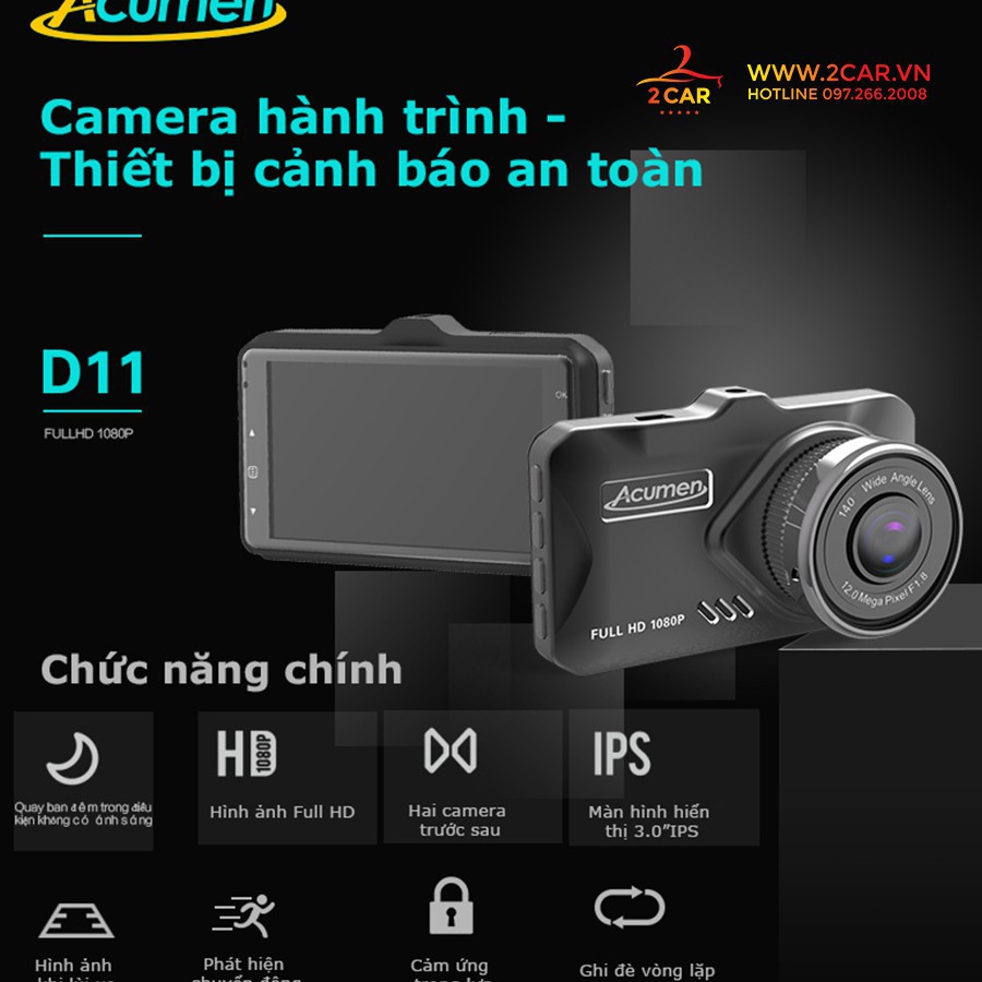CAMERA HÀNH TRÌNH ACUMEN D11 ĐÂY LÀ HÀNG chính hãng CỦA MỸ BẢO HÀNH một NĂM✔ Màn hình LCD 3 inch cho độ phân giải 960*240