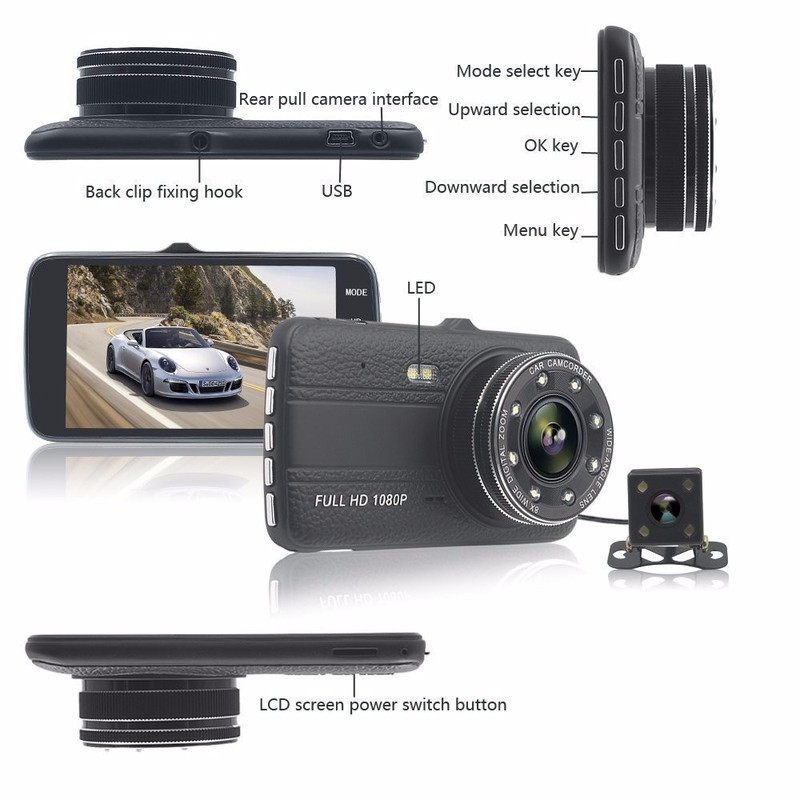 Camera Hành Trình Full HD 1080 phía trước và chống thấm nước, góc siêu rộng có thể ghi lại đầy đủ hình ảnh cho hành trình của bạn. Có thể dễ dàng chuyển đổi giữa phía trước và phía sau ống kính hiển thị. khi sao chiếc xe của bạn, phía sau máy ảnh sẽ tự động mở hình ảnh ngược lại