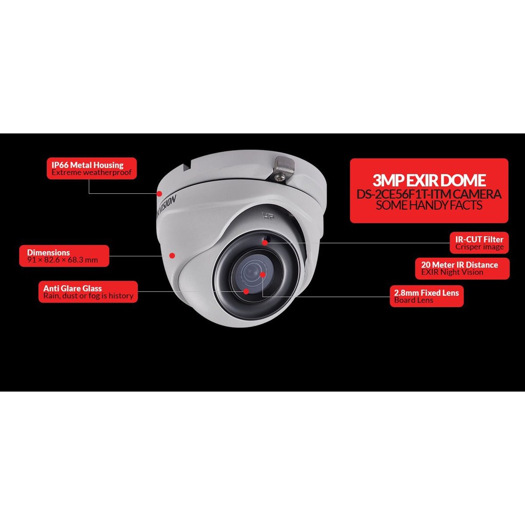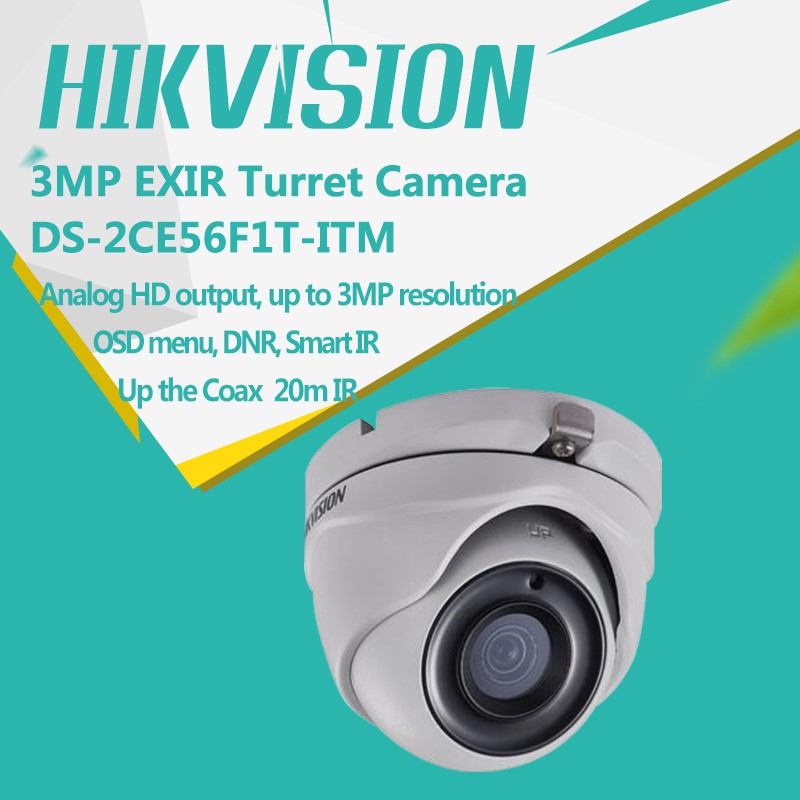 DS-2CE56F1T-ITM 3MP EXIR Turret Camera Sản phẩm cho hình ảnh ULTRA HD (cao hơn FULL HD 1080P) - Tương thích hoàn toàn với các chủng loại đầu ghi hình camera Hikvision với các mã sau: DS-7104HQHI-F1/N ; DS-7204HQHI-F1/N ; DS-7108HQHI-F1/N ; DS-7208HQHI-F1/N ; DS-7116HQHI-F1/N ; DS-7216HQHI-F1/N. Camera HD hồng ngoại , độ phân giải 3 Megapixel, hình ảnh cực đẹp, camera HD truyền tín hiệu bằng dây cáp đồng trục, không nén, hình ảnh chuyển động thời gian thực, không có độ trễ.