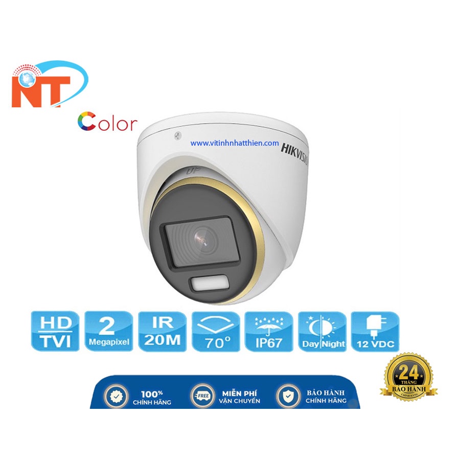 Camera HDTVI Dome 2.0 Megapixel HIKVISION DS-2CE70DF3T-MF- Camera công nghệ ColorVu chuyên dụng cho hình ảnh, màu sắc 24/7.