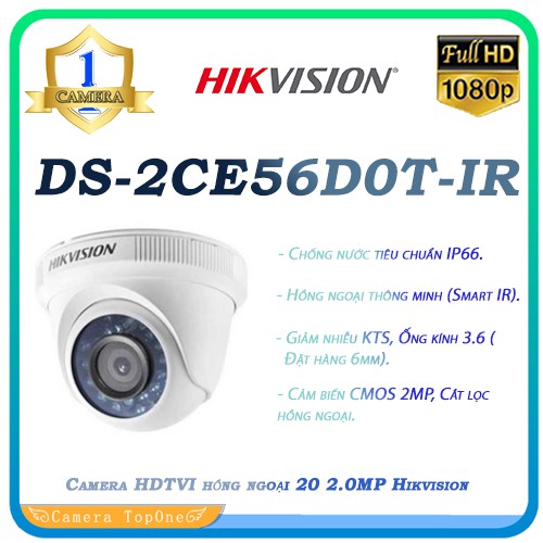 Camera HDTVI hồng ngoại 20 2.0MP Hikvision DS-2CE56D0T-IR