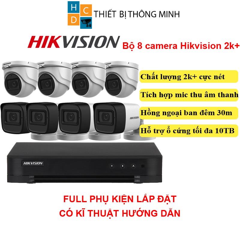 Bộ camera Hikvision 5/6/7/8 mắt 5mp chính hãng tích hợp mic thu âm chất lượng 2K+ đầy đủ phụ kiện