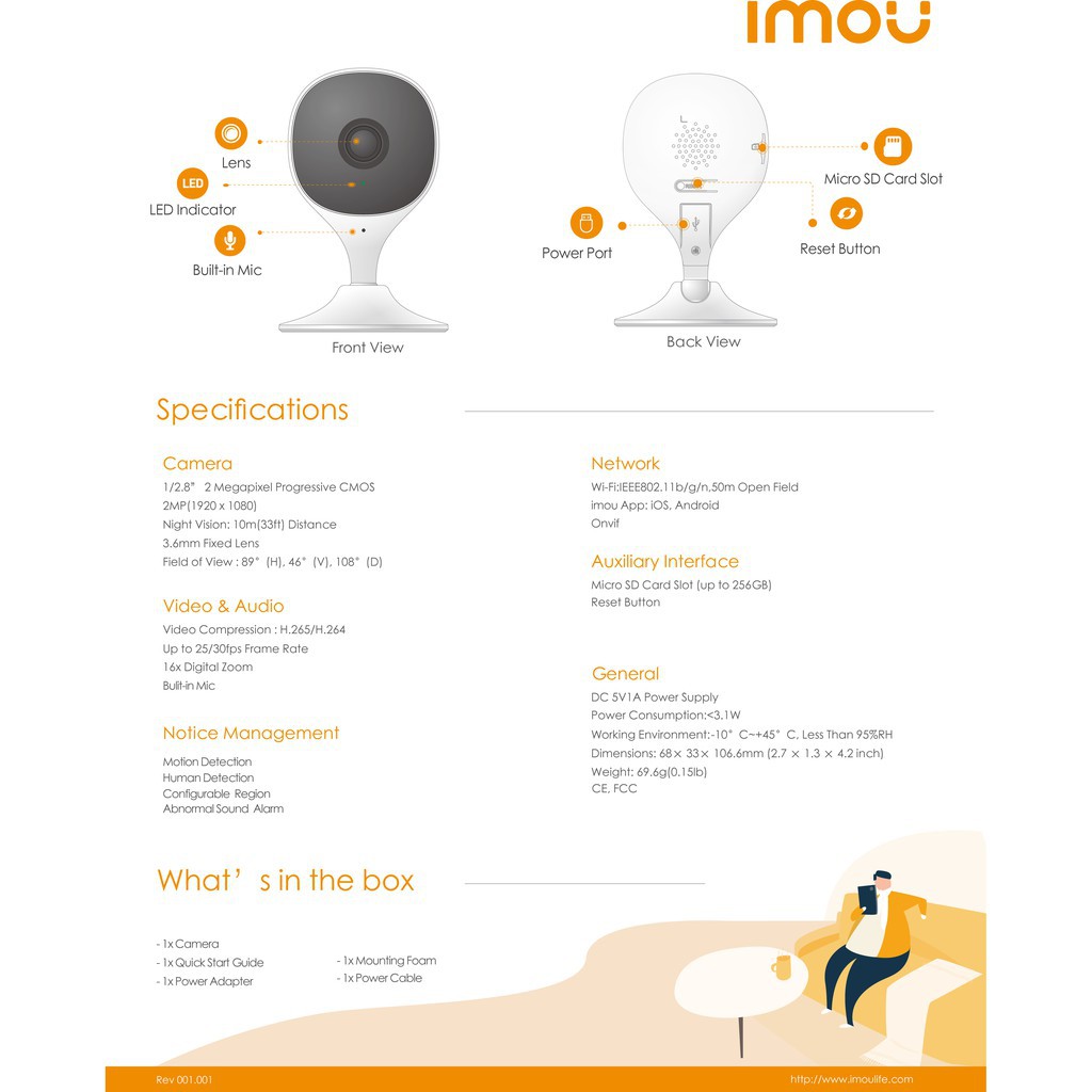 Camera Imou Cue 2C (C22CP) 2M Full HD 1080P & Nén H.265 ,Micro Tích Hợp