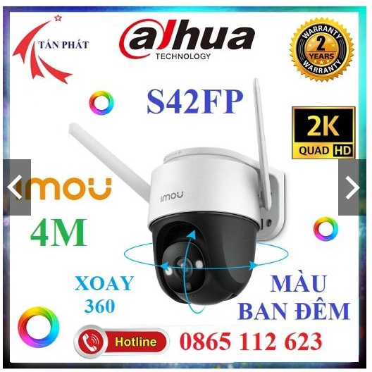 Camera Imou Cruiser S42FP-IMOU 4MP là dòngcamera IP Wifi sắc nét, tích hợp nhiều tính năng ưu việt của 1 chiếc camera wifi ngoài trời. Một giải pháp camera IP WIFI FULL COLOR tối ưu cho việc quan sát vào ban đêm với chế độ ban đêm thông minh với 4 chế độ hình ảnh cài đặt tùy chọn : Hồng ngoại, Full Color, chế độ tự động thông minh và chế độ tắt đèn led .