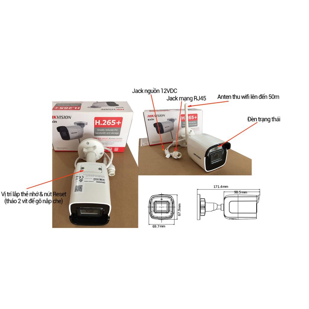 "Camera IP Trụ 2MP WIFI, chuẩn nén H.265+