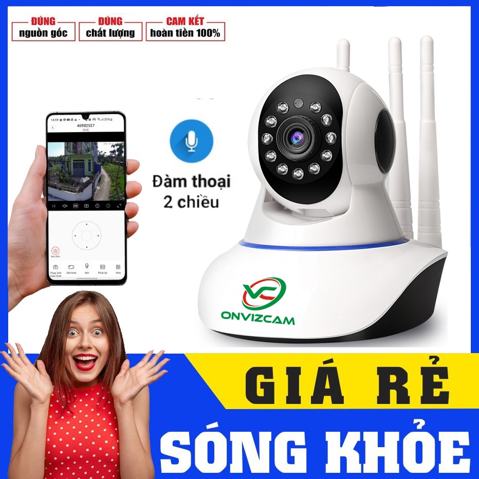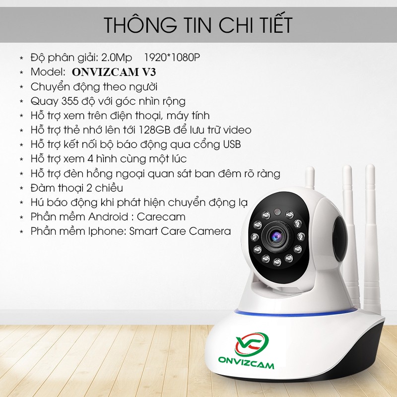 Cameras & Flycam > Camera giám sát > Camera giám sát kết nối internet || Camera ip chính hãng Onviz Việt Nam modell V3 dùng APP Carecampro 1080P 3 antenCòn hàng