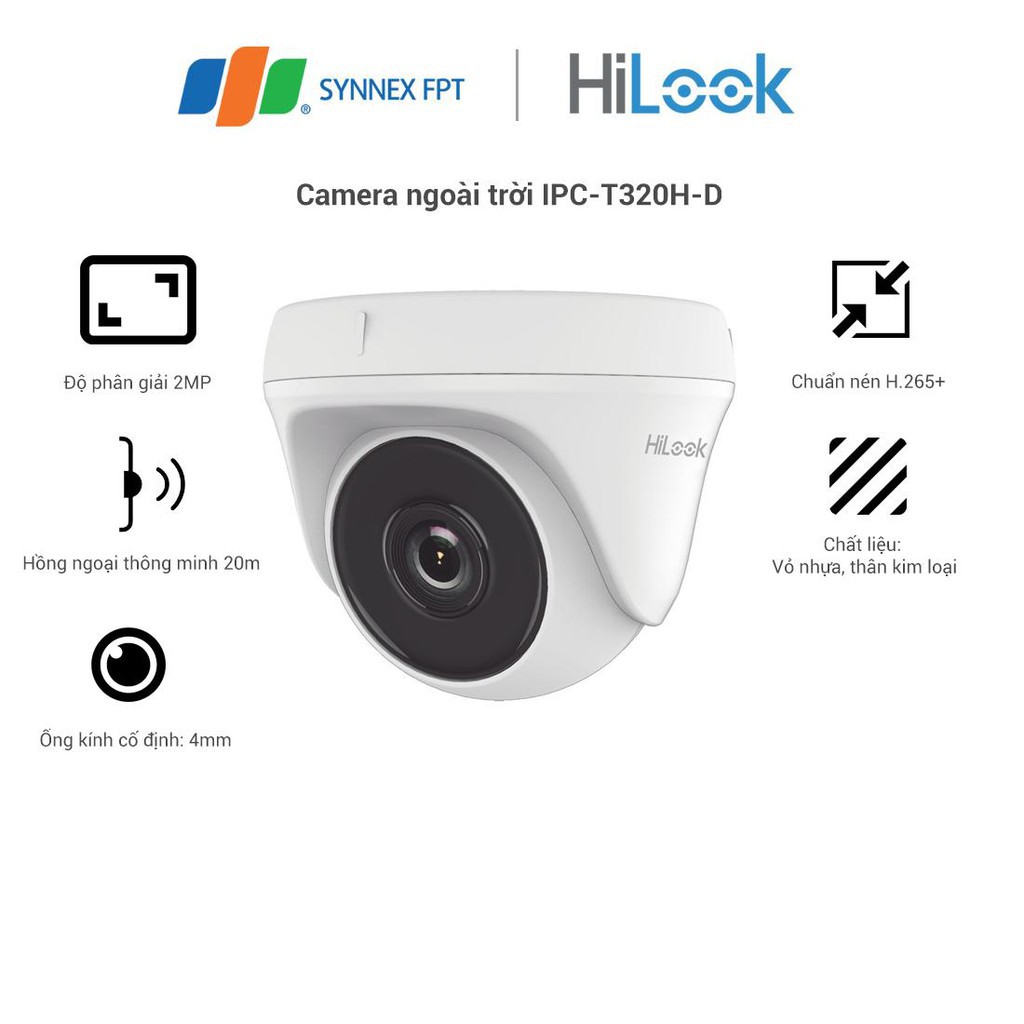 Cameras & Flycam > Camera giám sát > Camera giám sát kết nối internet || [Mã 273ELHA100K0 hoàn 7% đơn 500K] Camera IP Dome hồng ngoại 2.0 Megapixel HILOOK IPC-T320H-D - Hàng chính hãngCòn hàng