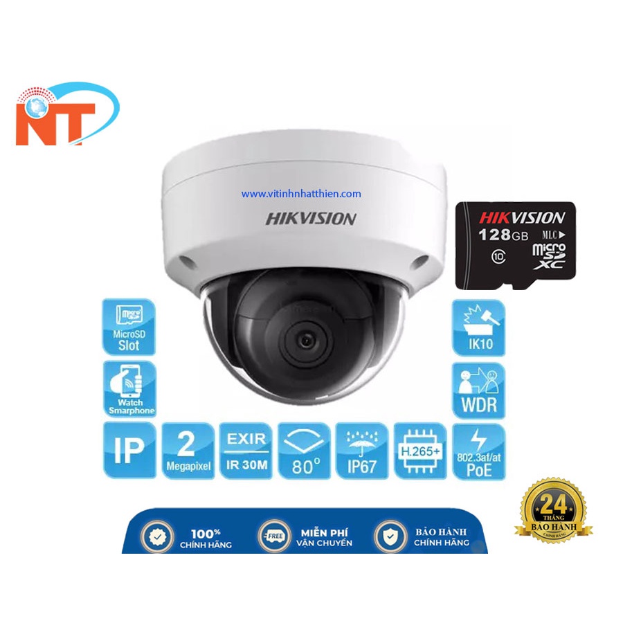 CAMERA IP DOME HỒNG NGOẠI 2.0 MEGAPIXEL HIKVISION DS-2CD2123G0-I hỗ trợ khe cắm thẻ nhớ và POE
