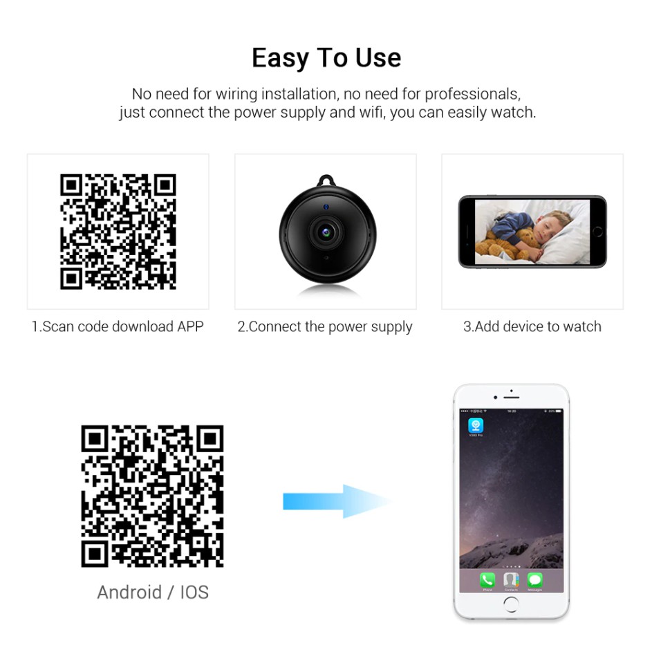 -- Camera nhỏ gọn dễ lắp đặt mọi nơi, bạn có thể xem từ xa bằng điện thoại, máy tính bảng qua internet. Có thể xem điện thoại IOS và Android.