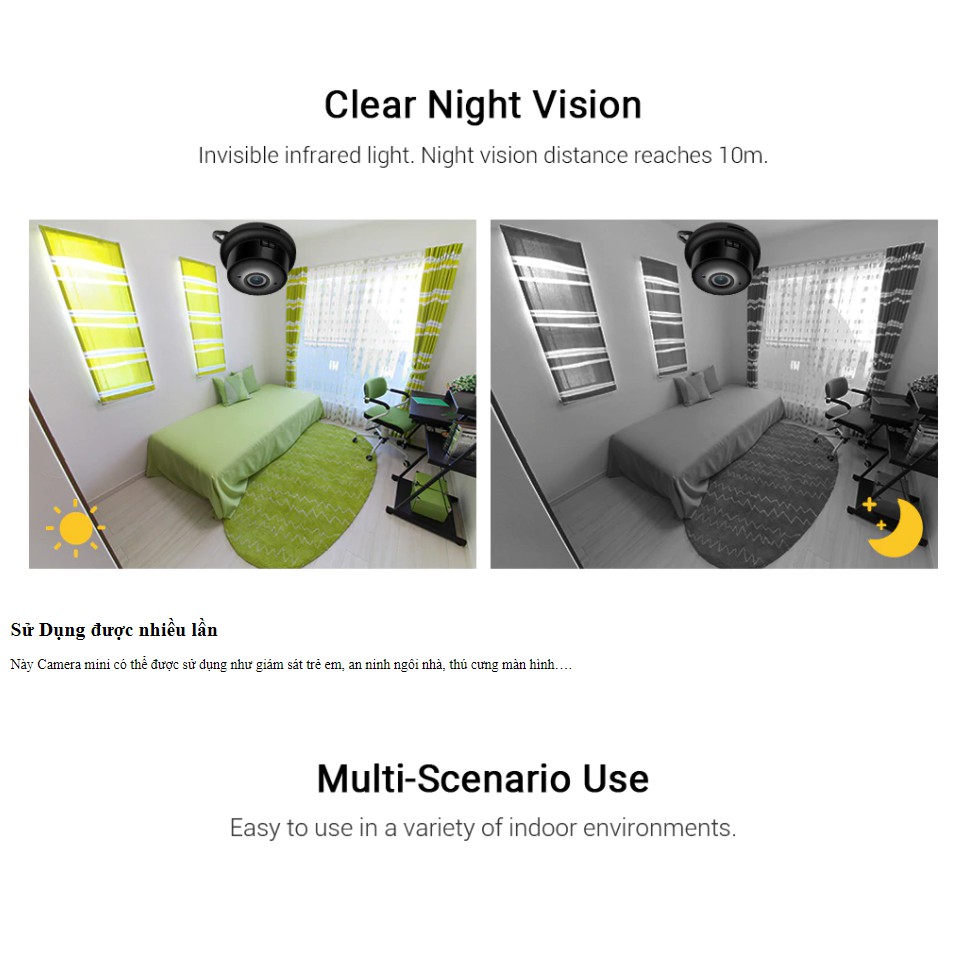 ---Camera độ phân giải HD1080P rõ nét quan sát nhà, văn phòng, xe ôtô.