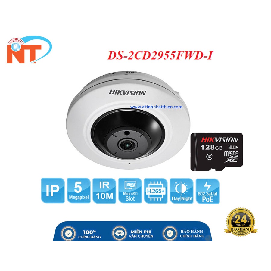 CAMERA IP FISHEYE HIKVISION DS-2CD2955FWD-I độ phân giải 5.0 MP, có khe thẻ nhớ lên 128G và cổng POE