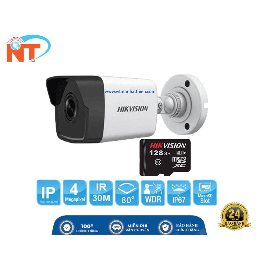 CAMERA IP HỒNG NGOẠI 4.0 MEGAPIXEL HIKVISION DS-2CD1043G0-IUF tích hợp mic thu âm và khe cắm thẻ nhớ