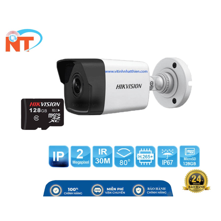 CAMERA IP HỒNG NGOẠI HIKVISION DS-2CD1023G0E-IF chuẩn H265 độ phân giải 2.0 MEGAPIXEL - hổ trợ thẻ nhớ lên 256G và POE