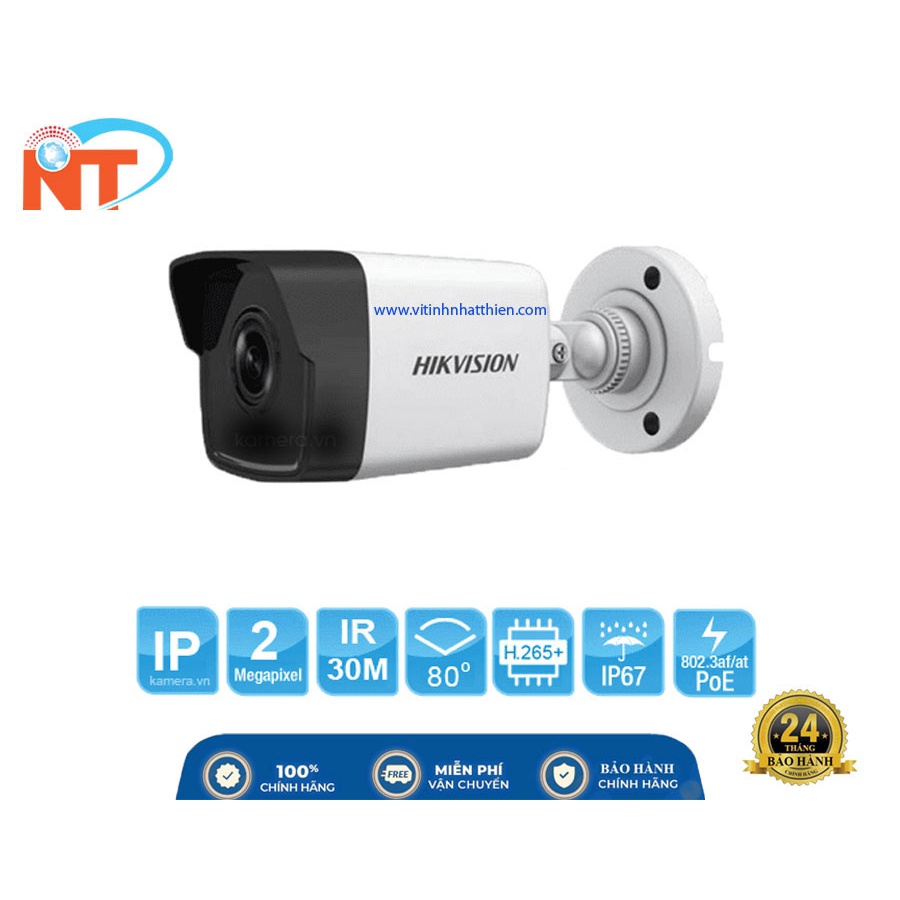 CAMERA IP HỒNG NGOẠI 2.0 MEGAPIXEL HIKVISION DS-2CD1023G0-IU tích hợp mic thu âm và POE - hàng chính hãng
