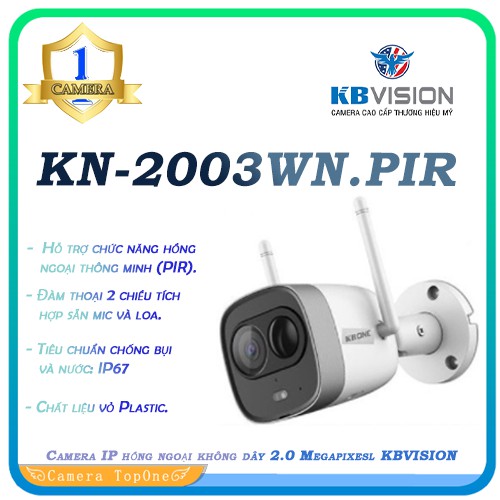 Camera IP hồng ngoại không dây 2.0 Megapixesl KBVISION KN-2003WN.PIR