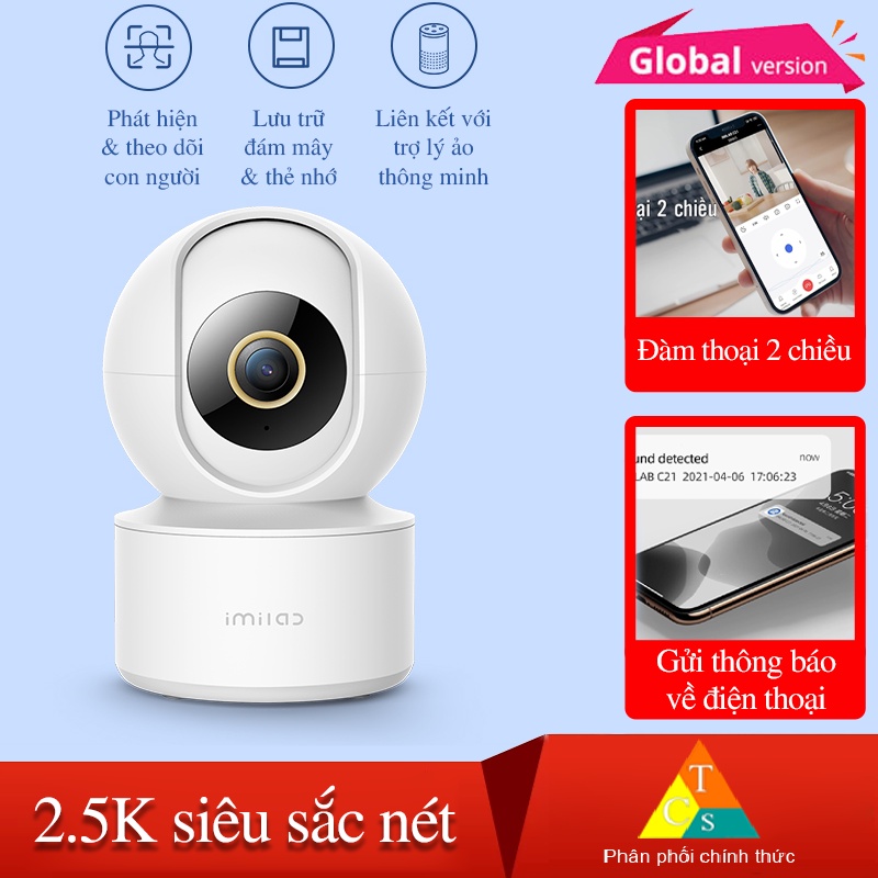 Camera ip Imilab C21 Bản Quốc Tế Xiaomi model CMSXJ38A với độ phân giải 2.5K 1440p sắc nét 2560x1440, với khả năng xoay 360° cho quan sát không góc chết, cảnh báo chuyển động âm lạ, kết nối thông minh qua APP Imilab Home...>Nâng cấp về chất lượng hình ảnh một cách đáng kể. So với các thế hệ trước, độ phân giải chỉ ở mức 720P và 1080P thì phiên bản mới này đã sở hữu độ phân giải lên đến 2.5K 1440p 2.5k (2560 x 1440). Nhờ đó, các chi tiết hình ảnh và video mà camera thu được sẽ có thể hiển thị một cách mượt mà, rõ ràng và chi tiết hơn.