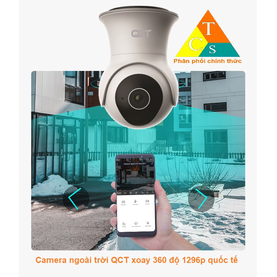 Camera IP ngoài trời QCT Outdoor 1296p gen2 quốc tế là thiết bị giám sát gia đình ngoài trời, siêu sắc nét 2k 1296p, có khả năng xoay 360°, chuẩn kháng nước IP65 có thể để ngoài trời, bộ nhớ sẵn có 64gb, khả năng điều khiển từ xa bằng điện thoại...Thông số chi tiết: