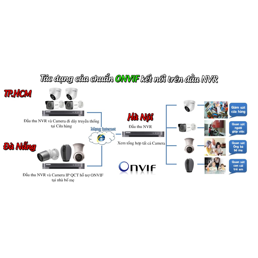 ✔ Có chuẩn Onvif (kết nối được với đầu NVR của các hãng Hikvison, Dahua...). Giúp xem trực tiếp trên TV, lưu trữ qua ổ cứng gắn ngoài