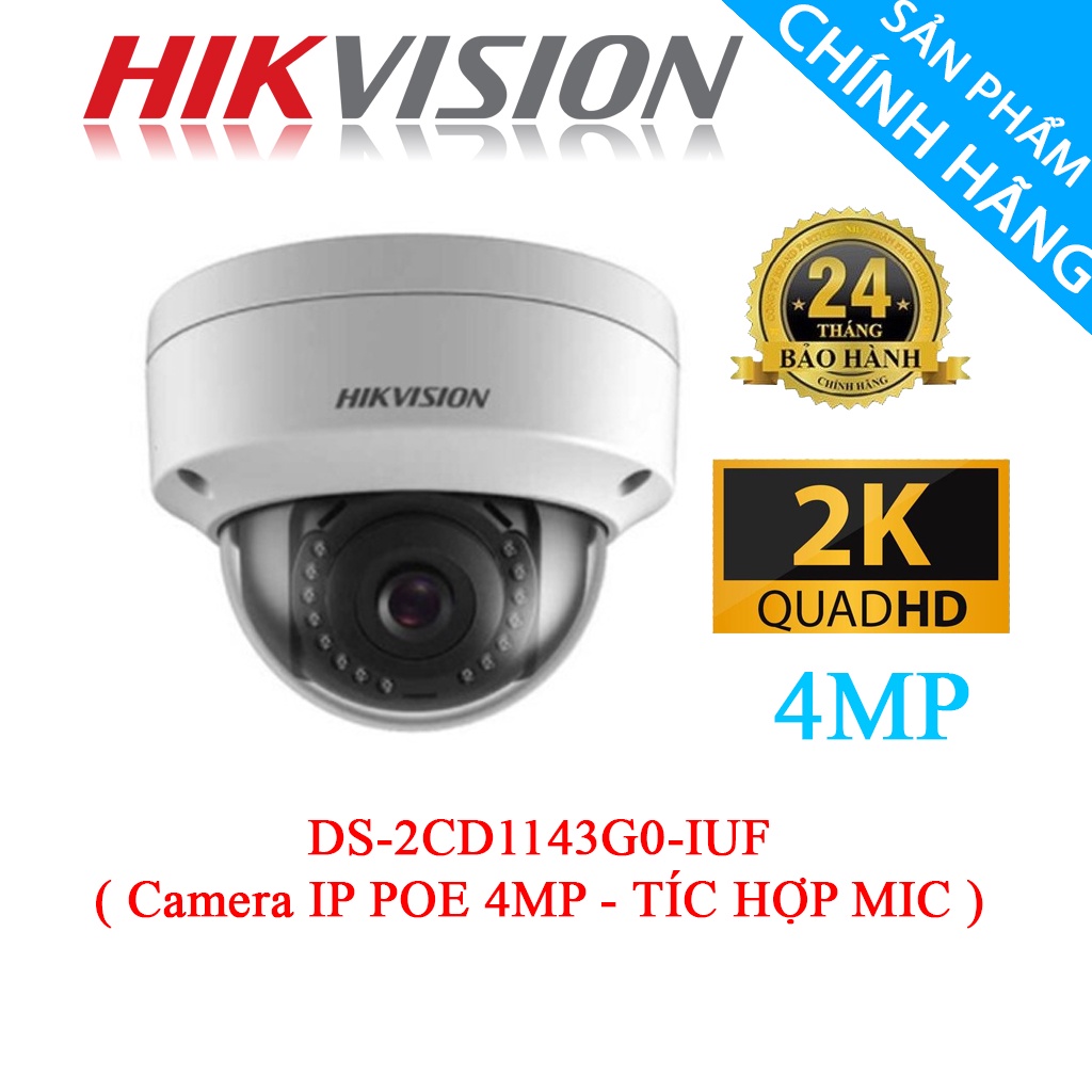 Giới thiệu Camera IP POE HIKVISION 4.0MP/2K [ TÍC HỢP MIC ] DS-2CD1143G0-IUF - Hàng Chính Hãng