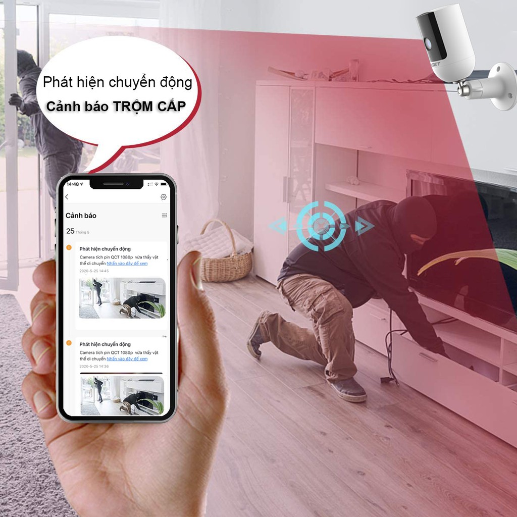 QCT Battery Camera IP là chiếc camera giám sát gia đình có tích hợp pin 6700mAh cho phép có thể hoạt động ở điều kiện không có điện trong 2 tháng, được tích hợp chuẩn chống nước IP54 có thể để ngoài trời có mái che, quản lý thông qua ứng dụng tiếng việt, đàm thoại 2 chiều...Giới thiệu Camera ngoài trời tích QCT