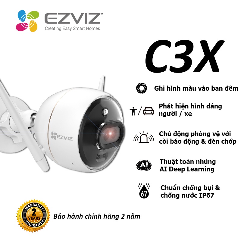 Giới thiệu Camera IP Wifi 2MP Ezviz C3X tích hợp AI, báo động - Hàng Chính Hãng, bảo hành 24 tháng