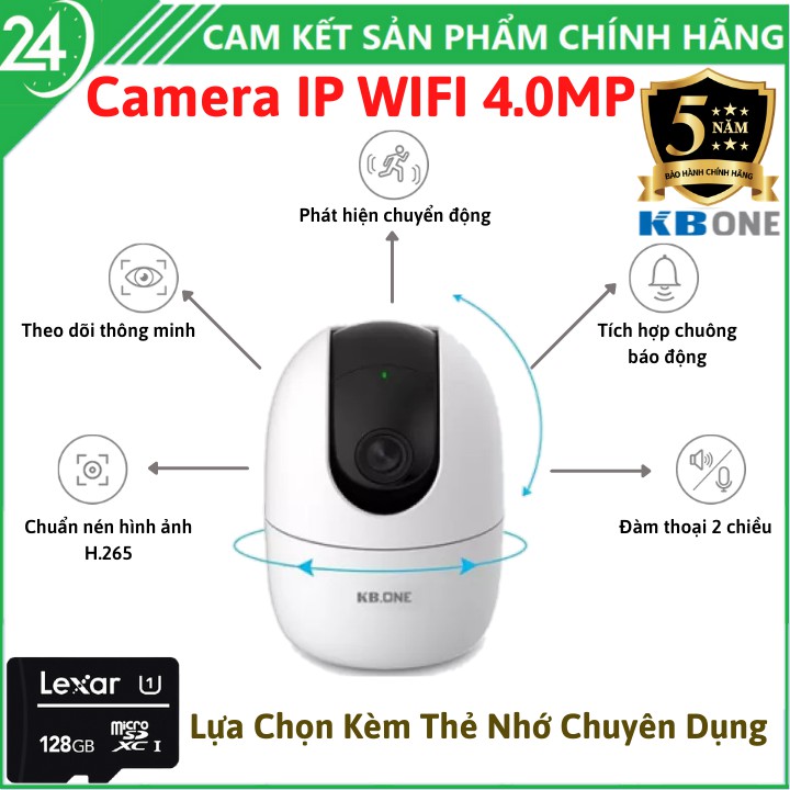 [LỰA CHỌN KÈM THẺ NHỚ CHUYÊN DỤNG - BẢO HÀNH 5 NĂM] Camera IP Wifi 4.0MPX , Camera Xoay 360 độ , Cảm Biến Sony NIR , Camera Hỗ Trợ Xem Đêm Hồng Ngoại , Đàm Thoại 2 Chiều , Theo Dõi Phát Hiện Chuyển Động Camera IP Wifi KBONE KN - H41P 4.0MP 2K HD Siêu Nét Xoay 360 Tích Hợp Còi Báo Động - Bản nâng cấp KBONE H21P H21PW H21PACam kết hàng chính hãng, hàng giống hình 100%✦ THÔNG SỐ KỸ THUẬT: