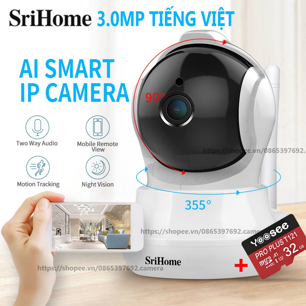 Camera IP WiFi Cao Cấp SRIHOME SH020 3.0 MP, Kèm Thẻ Nhớ