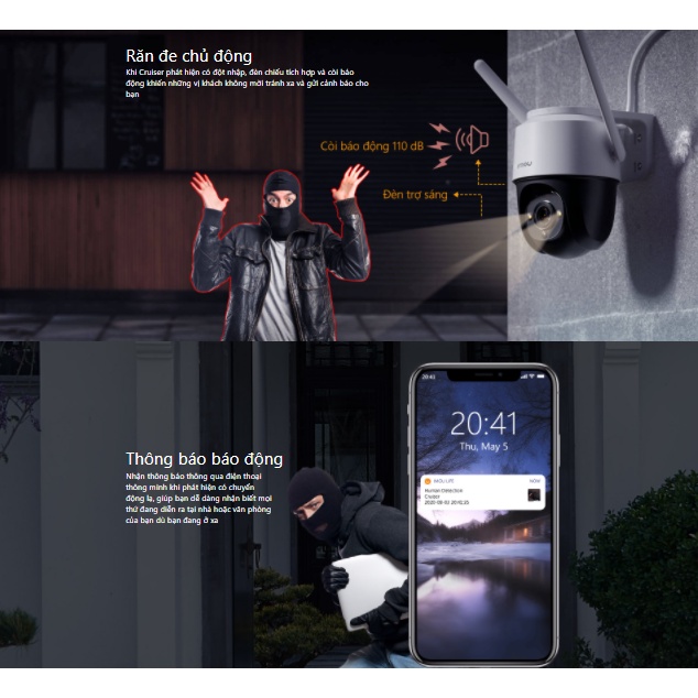 - Răn đe chủ động bằng đèn chiếu tích hợp và còi báo động